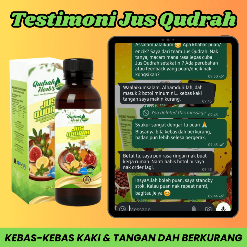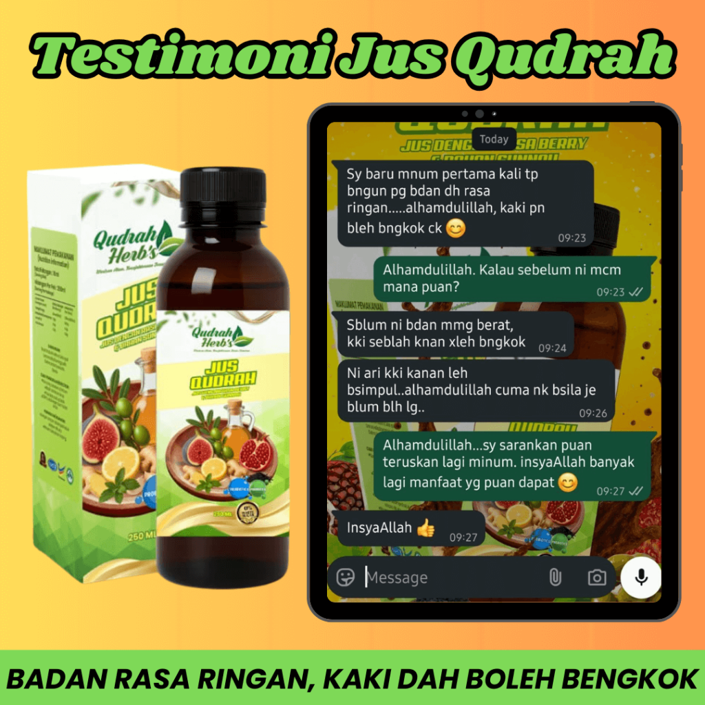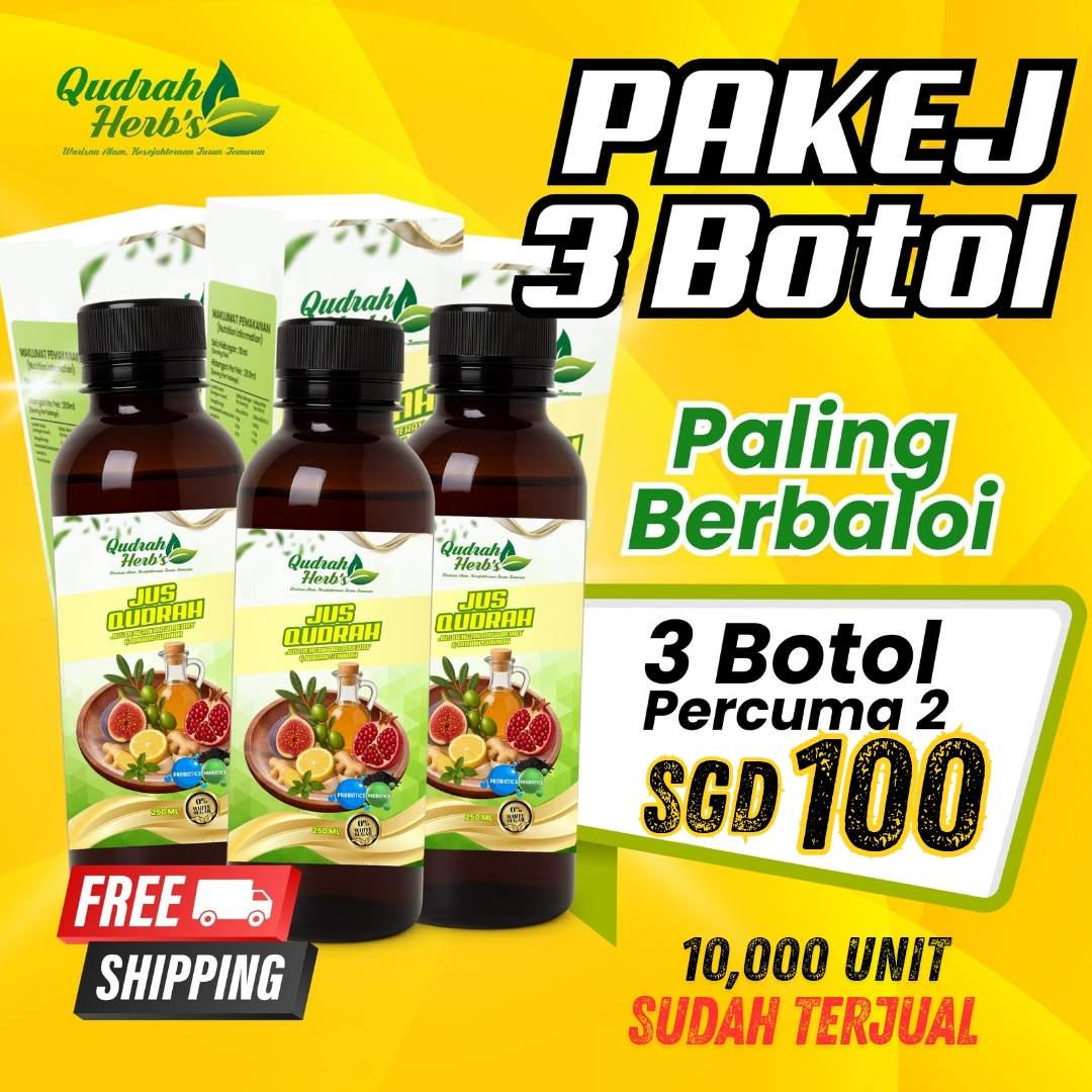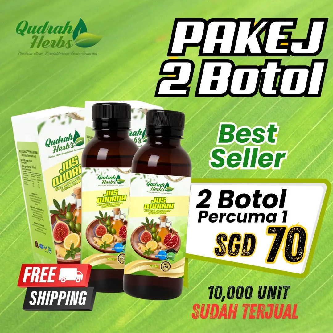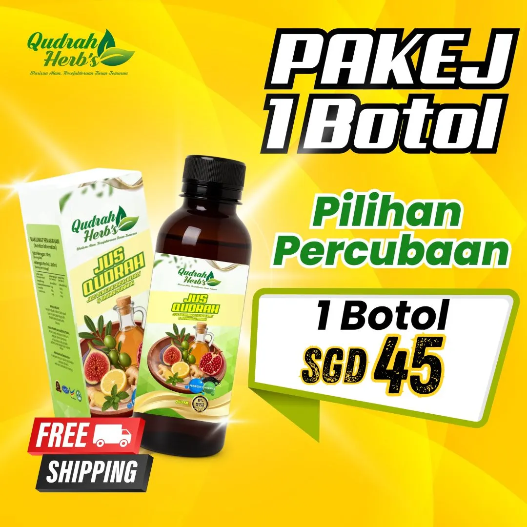 Jus Qudrah diformulasi hasil gabungan bahan sunnah yang telah dikaji di peringkat antarabangsa, ditambah pula dengan proses R&D yang teliti bagi memastikan kualiti dan keberkesanan terbaik. Setiap botol dihasilkan mengikut piawaian keselamatan dan kebersihan, supaya anda boleh amalkan dengan penuh yakin.