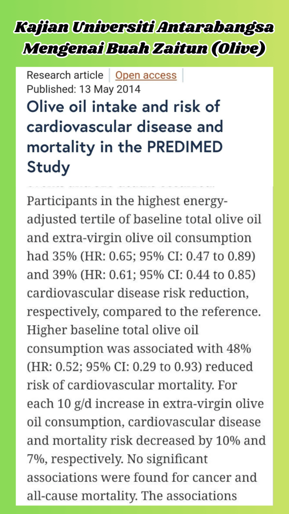 Allah SWT sebut dalam Al-Quran tentang Buah Tin dan Buah Zaitun, keduanya terkenal dengan khasiat untuk sistem pencernaan, kawal kolesterol dan baik untuk kulit.