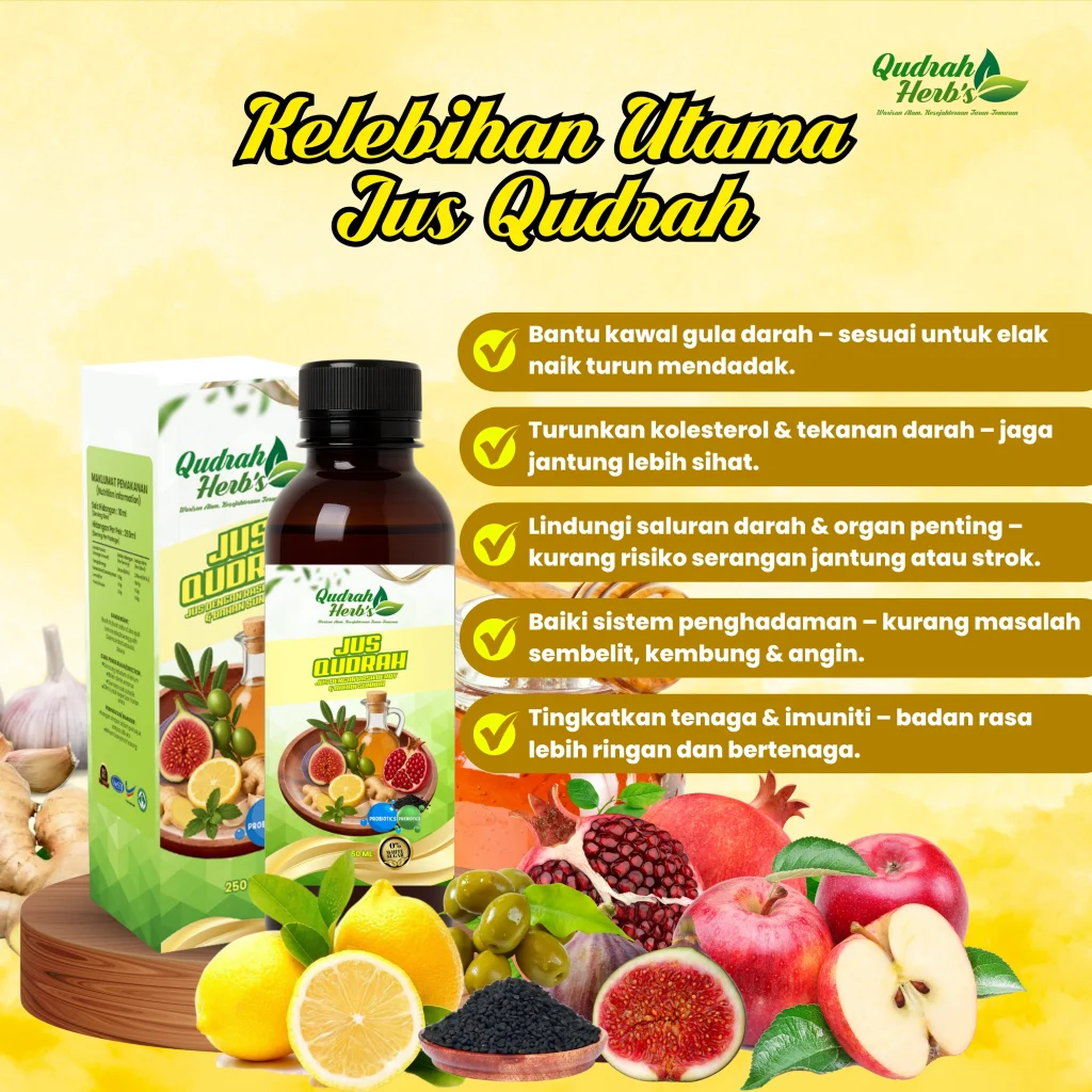 Semua ni digabung dalam Jus Qudrah — ikhtiar mudah untuk anda yang nak amalkan gaya hidup sihat berpandukan sunnah.