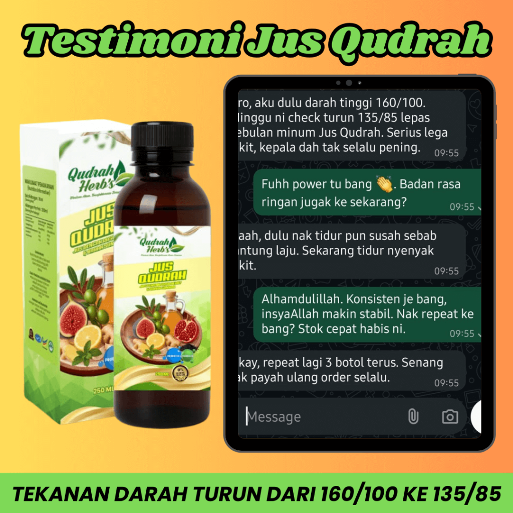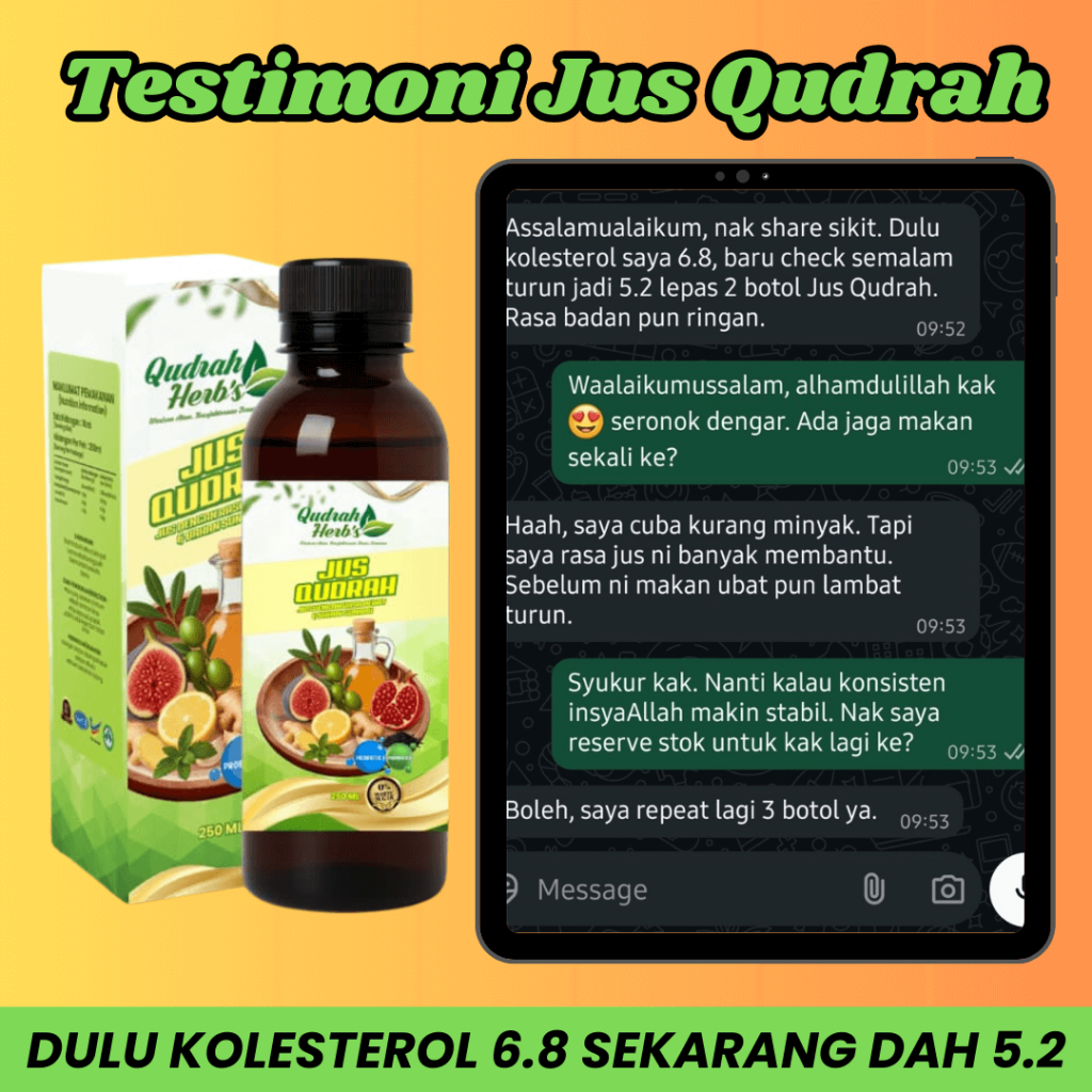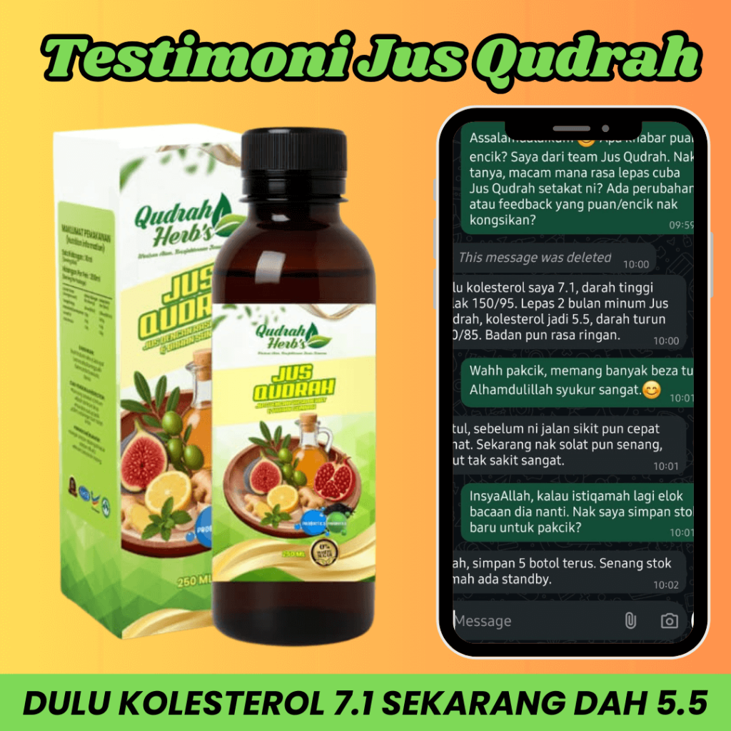 Diformulasi dengan bahan sunnah dan kajian ahli sains bertauliah. Dengan Jus Qudrah, terbukti mampu mengawal masalah kolesterol, darah tinggi dan kencing manis.